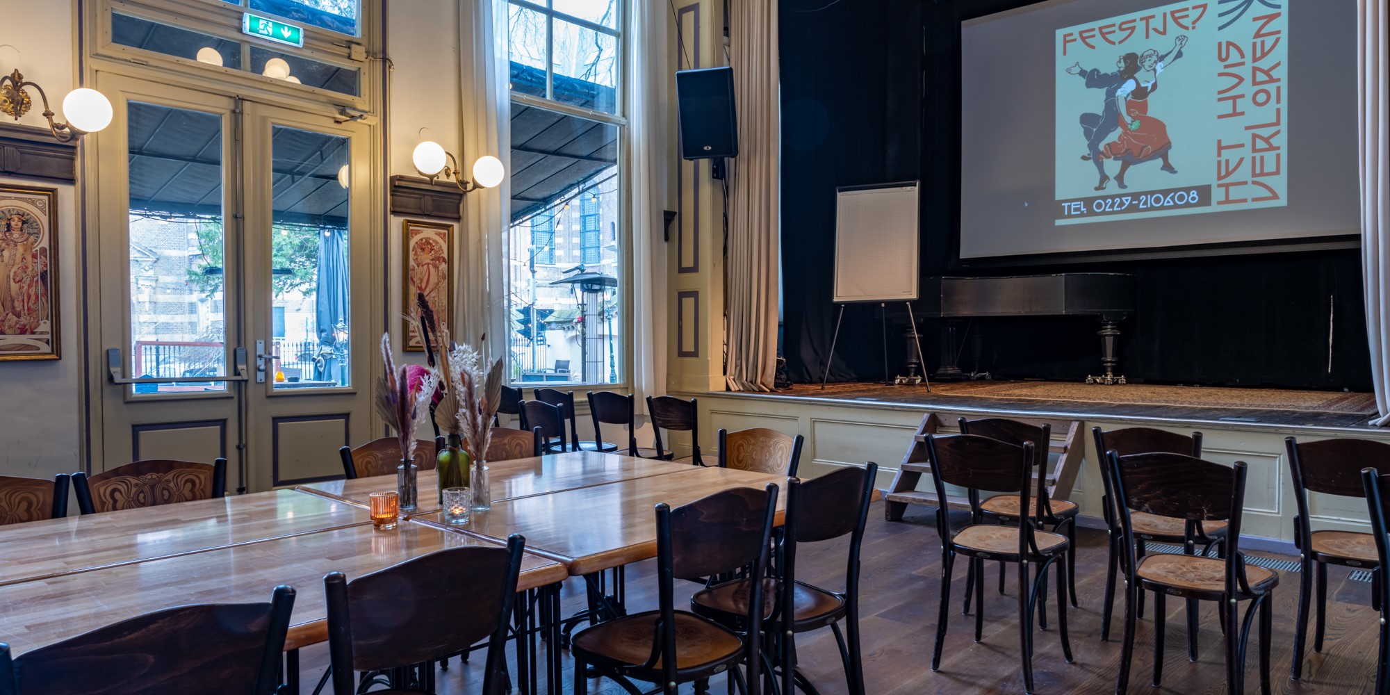De zaal van het huis verLoren is een mooie plek om vergaderingen, workshop, lezing of andere bijeenkomsten te houden.
